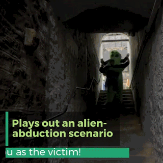 Le grand costume gonflable ne vous laissera pas disparaître dans le nuage. Le costume amusant joue un scénario d'enlèvement extraterrestre avec vous en tant que victime! Il est gonflable avec un ventilateur intégré pour vous garder à l'aise tout en gardant le costume debout.