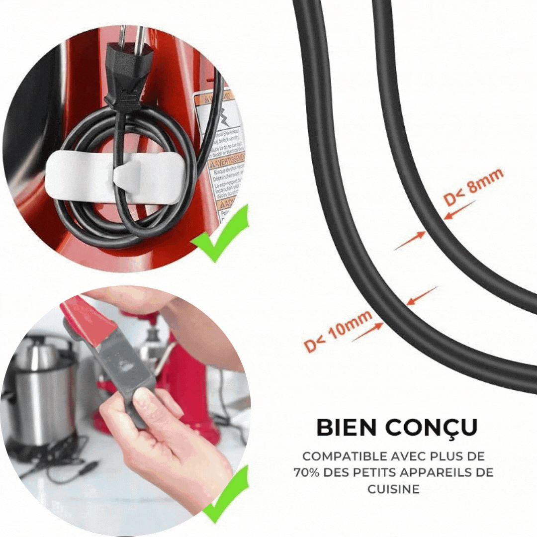 • Compatible Avec La Plupart Des Appareils De Cuisine : Le range-cordon peut être utilisé pour toutes sortes d'ustensiles de cuisine, tels que mixeur, cafetière, blender, friteuse, grille-pain, autocuiseur, presse-agrumes.