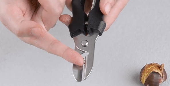 Économie d'énergie: la pince à châtaignes permet de couper la coquille dure aussi facilement que l'on épluche un fruit, de tenir la châtaigne tout en la grattant et de couper facilement la coquille.