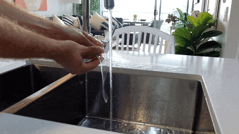 • À laver, faites-le simplement couler sous l'eau tiède et massez légèrement la saleté. Une fois cela fait, laissez sécher à l'air sur le robinet ou le séchoir.